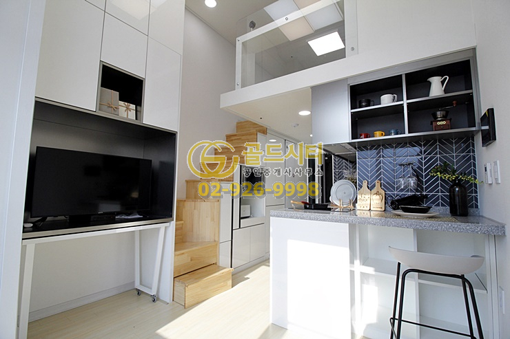 모든 옵션이 새제품이며 복층으로 이루어져 침실과 거실의 공간의